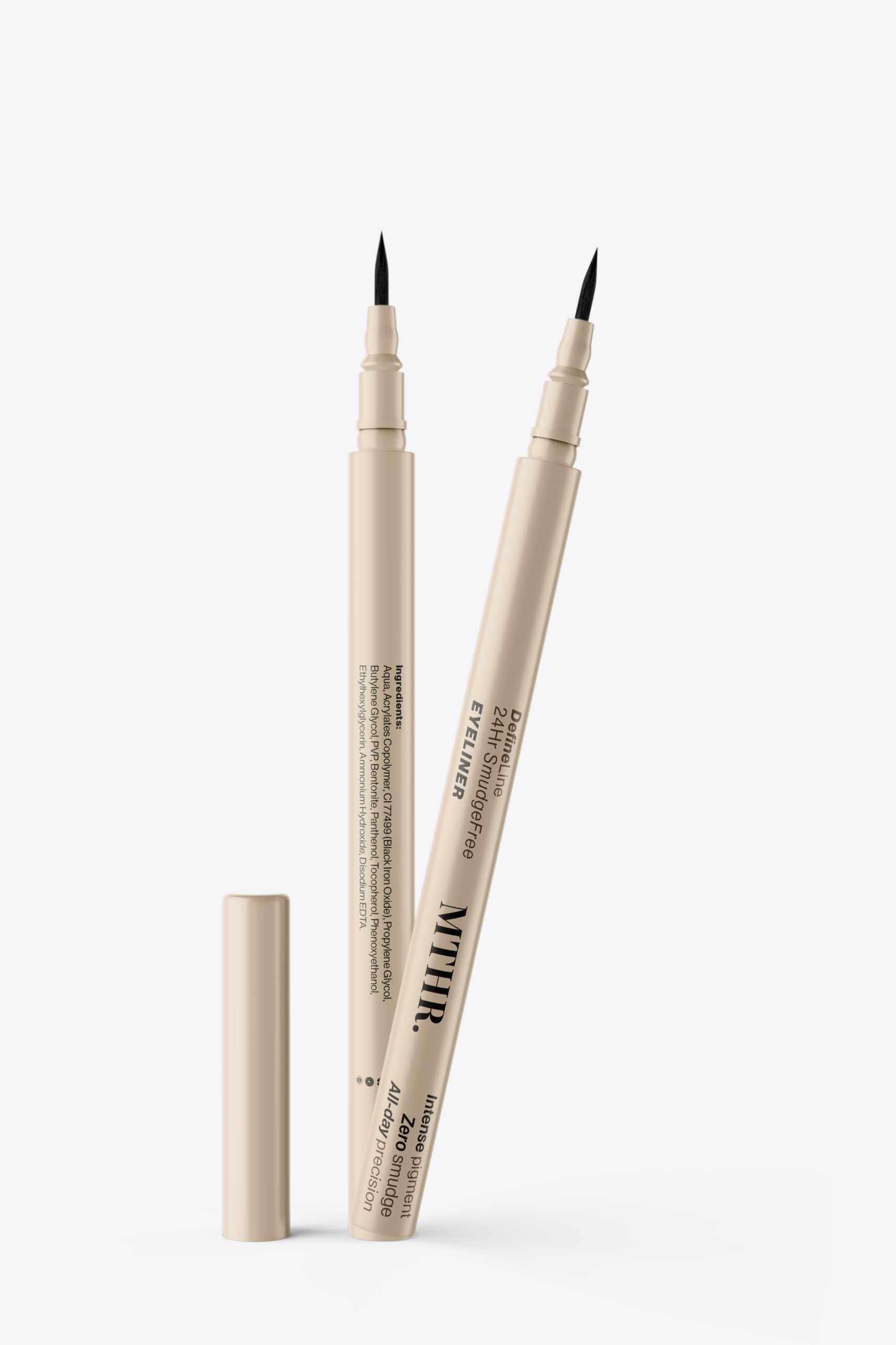 Define your eyes with DefineLine, a high-performance liquid eyeliner designed for effortless control and lasting impact. Its precision felt-tip delivers rich, opaque color in a single stroke, while the airtight cap and built-in shaker ball ensure smooth, skip-free flow every time. Smudge-proof, water-resistant, and 24-hour confident — because your look should last as long as you do.